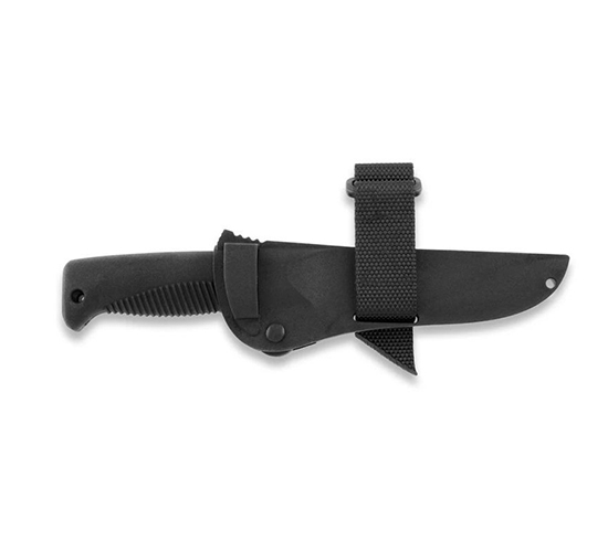 Kratší varianta finského armádního nože J-P Peltonen M95 Ranger s kompozitním pouzdrem.
