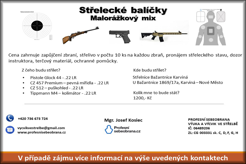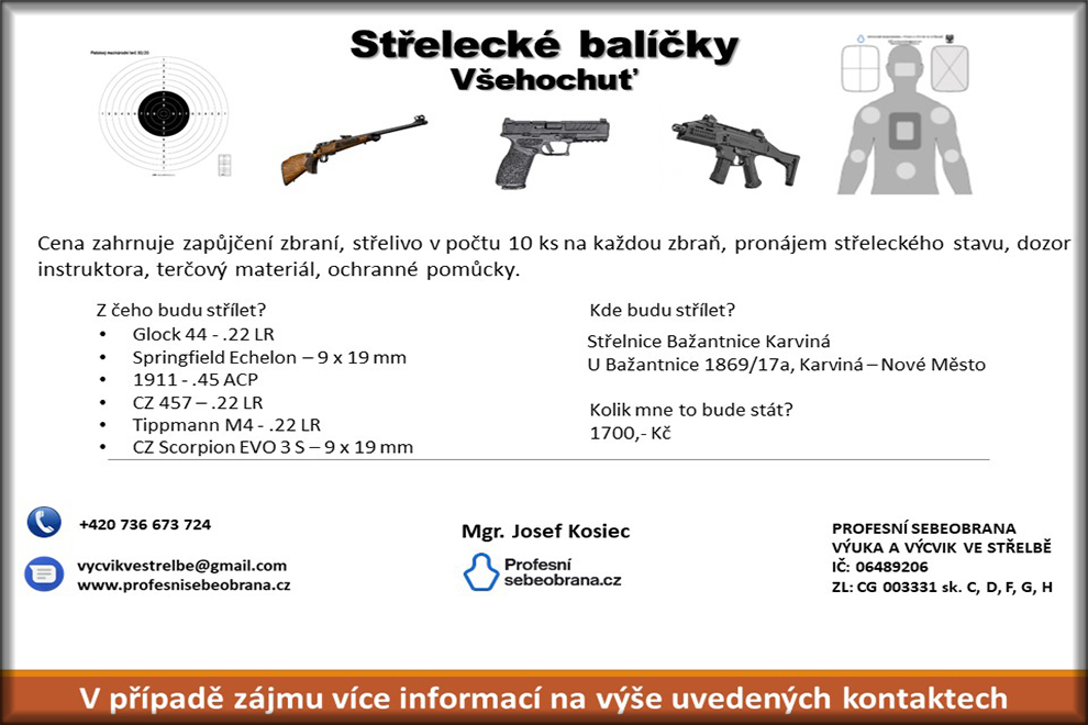 Vybíráte si novou zbraň a nevíte, jak se chová při střelbě? Anebo si jenom chcete vyzkoušet jiné typy zbraní a ráží? Jestliže jste si odpověděli na některou z předešlých otázek kladně, tyto balíčky mohou být právě pro Vás.